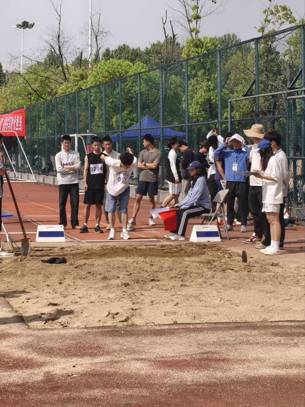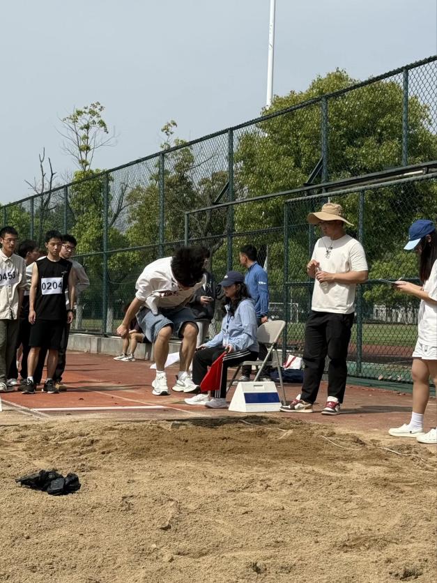 田赛赛场同样精彩纷呈。男子跳远决赛中,学子们助跑蓄力、奋力起跳,每一次腾空都利落舒展,每一次落地都凝聚着平日的训练汗水,展现出扎实的运动功底与良好的竞技状态。