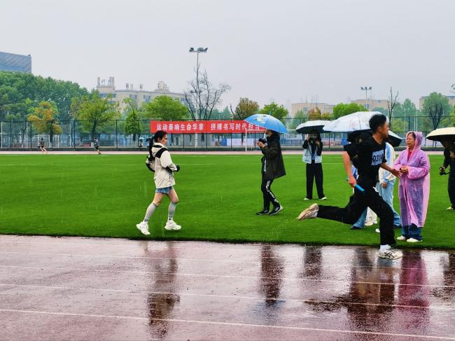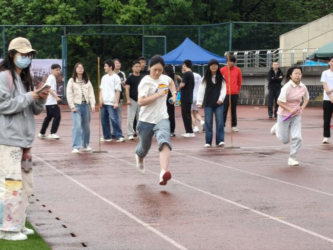 第二个比赛日,天降细雨,赛场湿滑,但我院运动健儿们不畏风雨、斗志不减,依旧以饱满的状态延续拼搏姿态,向更高目标发起冲击。上午的女子三级跳远赛场,选手助跑、踏跳、腾空、落地连贯流畅,每一次腾跃都是力量与技巧的展现,在沙坑前定格青春最美姿态;男子铅球赛场,运动员凝神聚力、奋力挥臂,铅球带着力量与期望划破长空,用实力诠释力量之美。4×400米接力赛激情开赛,接力棒在队员手中传递,默契配合、全力冲刺,步伐坚定、呐喊激昂,以团队协作凝聚奋进力量,展现出我院学子同心同向的凝聚力。