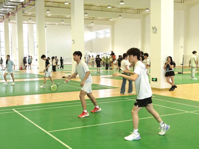 下午的赛事延续了火热氛围,各项比赛有序开展,高潮迭起。800米决赛中,运动员们合理分配体力,起跑、加速、冲刺节奏分明,在耐力与毅力的双重较量中奋勇向前,不畏强敌、赛出风格,充分展现了不服输的运动精神。田赛项目持续发力,女子铅球决赛中,选手们凝神聚力、奋力投掷,实心球在空中划出优美弧线;女子跳远、女子及男子立定跳远决赛中,学子们屈膝、摆臂、起跳,动作流畅连贯,在一次次尝试中突破自我,展现力量与技巧的完美融合。羽毛球预赛亦火热开启,参赛选手们默契配合、激烈对抗,跳跃、扣杀、防守灵活切换,以饱满的热情投入比赛,尽显竞技体育的魅力。