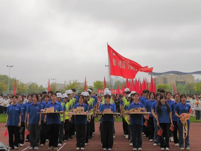 晨光熹微,彩旗飘扬。江汉大学2026年春季运动会开幕式在激昂的旋律中拉开帷幕。伴随着铿锵有力的运动员进行曲,数字建造与爆破工程学院方阵身着整齐服装,迈着矫健有力的步伐,昂首阔步走过主席台。队伍中,部分同学身着专业工装、头戴安全头盔,手持精致的建筑模型,以独具匠心的设计充分展现了学院各专业特色与实践风采。全体方阵成员精神饱满、气势昂扬,彰显出团结奋进、朝气蓬勃的精神风貌,赢得现场阵阵掌声。