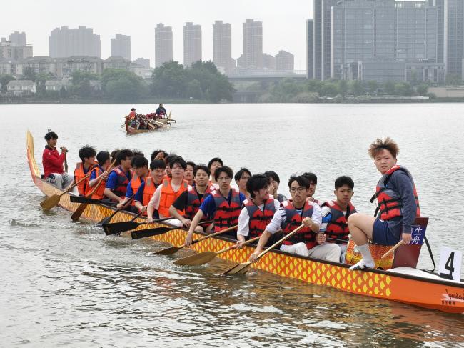 球类与特色项目亦捷报频传。乒乓球决赛中,选手沉着应战,挥拍、扣杀、防守一气呵成,巧妙的战术配合与精湛的个人球技,引得现场观众连连称赞。龙舟赛中,队员们同心协力、挥桨逐浪,整齐划一的动作配合铿锵有力的呐喊,在水面上奋勇前行,凭借默契的团队协作与顽强的拼搏劲头,最终斩获校第5名的优异成绩,为学院增光添彩。自行车比赛中,选手们端坐器械之上,全力蹬踏、奋勇竞速,专注的神情与不懈的坚持,尽显青春活力与拼搏劲头。