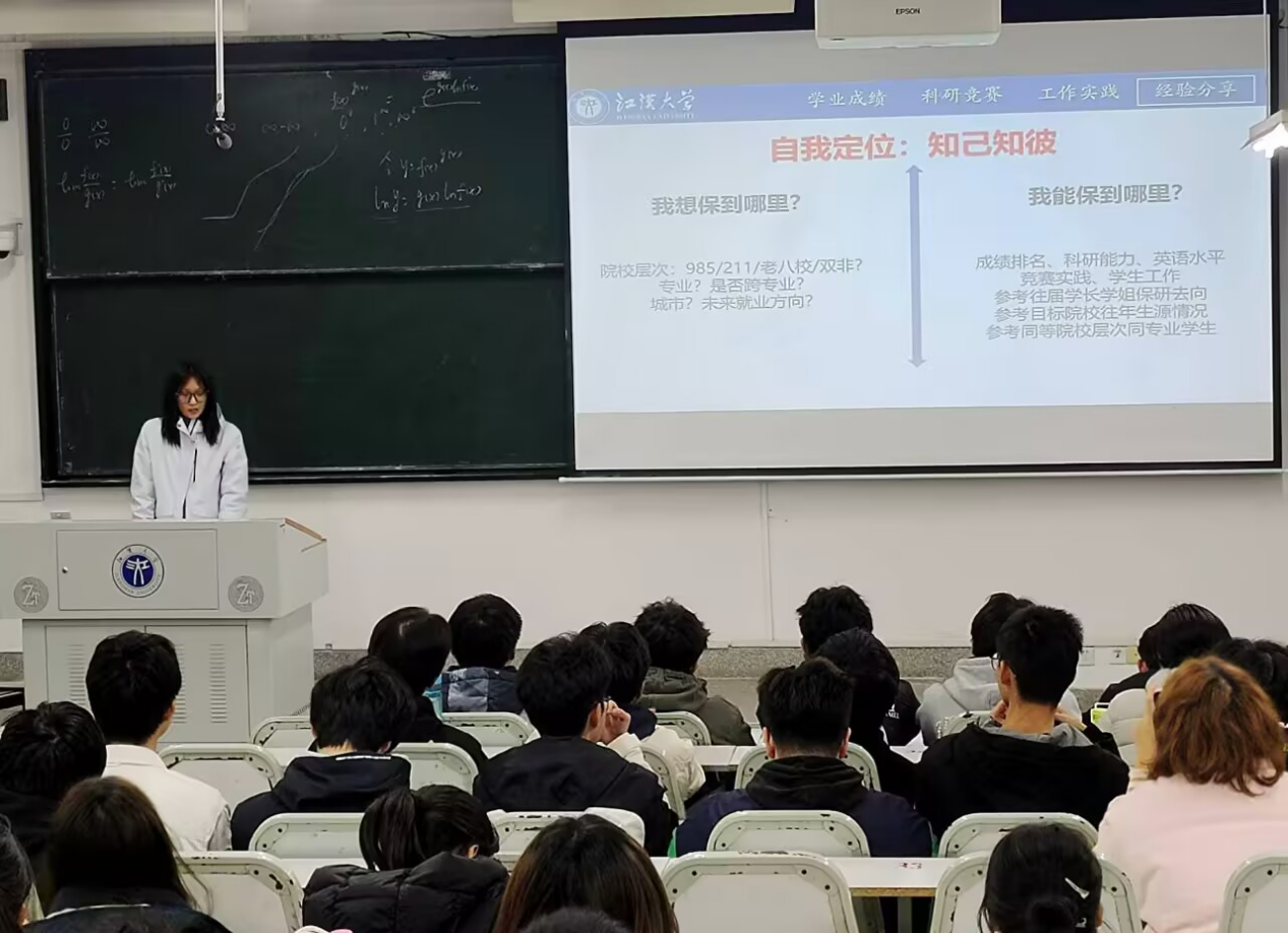 此外,高梓婕和曹舒两位同学还分享了她们成功保研的经历,现已顺利推免至东北大学和河海大学。她们详细剖析了升学的关键要素:成绩排名、英语四六级成绩、科研与竞赛成果等;同时,她们强调要提前了解不同院校的线上线下、PPT答辩或电话面试等多种选拔形式,分类整理简历、科研证明等材料,并积累专业英语词汇及行业热点知识。她们以“摸石头过河”的首届保研经验激励大家:“不必畏惧迷茫,多关注班级群、学院通知及优秀学子的经验分享,便能少走弯路。”
