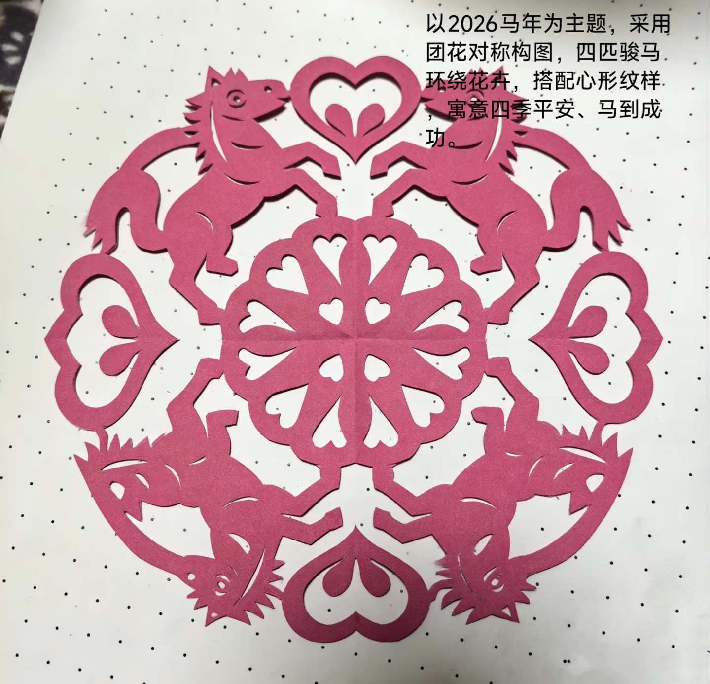 剪纸与书法作为中华传统文化的经典符号,是新春民俗中不可或缺的表达方式。学子们执剪为笔、以纸为卷,在一剪一刻、一撇一捺间,沉浸式感受非遗文化的独特魅力。红纸翻飞间,骏马腾跃、福字饱满,既有传统纹样的工整精致,又融入年轻一代的审美巧思。每一幅剪纸、每一张福字,都是对新春的深情祈愿,也是文化血脉在指尖的悄然延续。