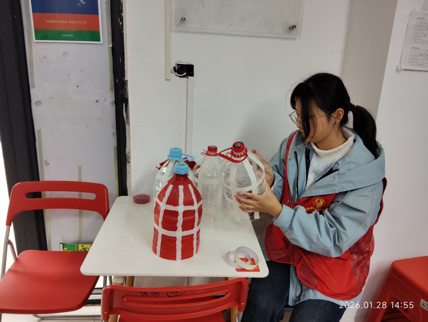 与此同时,大家积极践行绿色理念,巧用废弃塑料瓶、旧气球等材料制作环保灯笼,将年味与环保相融,既点亮了新春,也点亮了责任与担当。