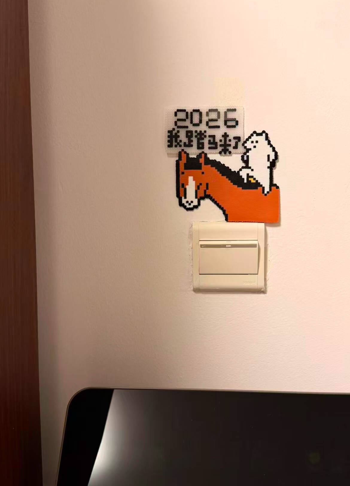 从民俗到生活,从传统到日常,学子们还将巧思延伸至生活美学领域。扭扭棒在指尖缠绕,化作向日葵、康乃馨等栩栩如生的花束,每一朵都盛开着温暖与祝愿;拼豆在巧手下拼接,勾勒出骏马迎春、福运连连的灵动图案,俏皮中见心意,简约中见深情。这些作品虽小,却承载着学子们对生活的热爱、对新春的期盼,也展现了江大人积极向上的精神风貌。