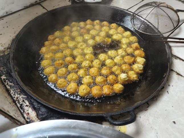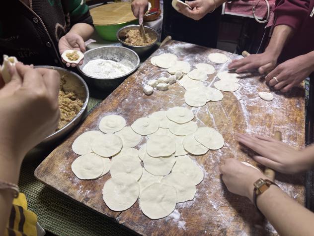 炸圆子是春节不可或缺的经典年味。揉面、调馅、搓圆、油炸,学子们动作有条不紊,金黄酥脆的肉圆、藕圆在油锅中翻滚,寓意团团圆圆、吉祥如意。包饺子的环节里,一家人围坐一桌,擀皮、填馅、捏褶,月牙形的饺子错落摆放,指尖的巧思将团圆的温暖藏进每一个褶皱。还有同学解锁蒸点心的技能,软糯的糕点出炉,甜润的口感承载着年年高升、蒸蒸日上的美好祝福。