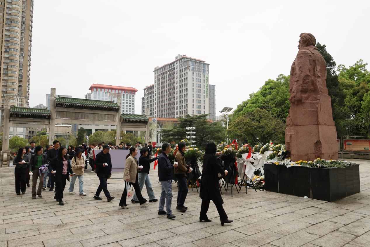 当日下午13时,参与人员整齐集结于师生服务中心门口,全体党员佩戴党徽,乘车前往施洋烈士陵园,怀着崇敬之心踏上缅怀之路。